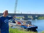 Nu alleen nog de palen de bodem in en de beugels aan de Ondine. Palen van 21 meter lang, 71 cm doorsnee en 1,1 cm wanddikte die voor de stevigheid 8 meter diep de bodem in gaan. Om de palen te kunnen berekenen moesten we eerst de stroomsnelheid in de Spiegelwaal weten. Die is niet bekend en dus hebben we tijdens de hoogwaterstand van de Waal in januari 2018 met stopwatch en een drijvend stuk hout in de Spiegelwaal de stroomsnelheid bepaald. Die waarde hebben we geëxtrapoleerd naar de hoogst denkbare waterstand. Een ingenieursbureau uit Hengelo heeft mede op basis daarvan de afmetingen van de palen bepaald.
