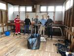 Nu moet de Ondine nog gebruiksklaar worden gemaakt en ook dat is nog wel even een klusje. Er is al heel veel gedaan, zoals het saneren van het asbest en het slopen van de kleedkamers en de clubruimte. Daarmee is tevens de dwarswand gesloopt en nu moet de stabiliteit van de wanden nog worden verbeterd met balken. Het grootste deel van de vloer is al dichtgelegd maar er moet nog een deel worden gedaan. Dan moeten nog de nodige frames worden gemaakt waarop de boten komen te liggen.![]()